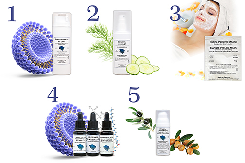 (1) Очищение: Очищающее молочко с DMS® (Reinigungsmilch mit DMS).